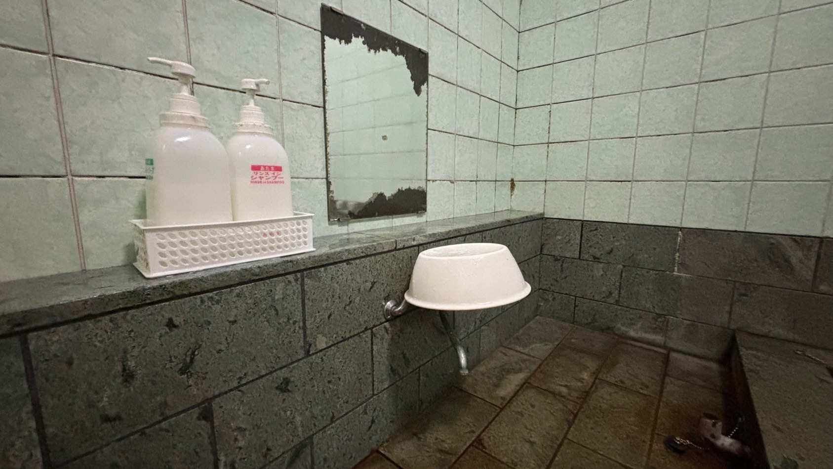 蛇口から出るお湯で頭流したらアルカリ性の温泉なので当然泡立たない 布団は自分で敷く形式