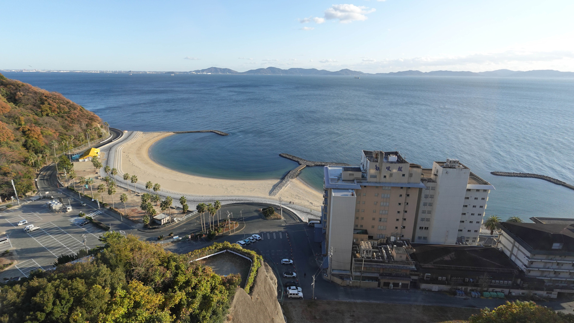 ということは海岸に行くには激坂を昇り降りする必要がある。 エレベーターもあるがこの日はメンテ中で停止。 海岸には加藤清正が名古屋城の石垣の石を取った跡がある。 蒲郡競艇近くには平安時代から犬飼湊があって徳川家康がまだ竹千代の頃人質に船出した由緒あるところ。竹島には関ヶ原の合戦前に戦勝祈願した神社がって、徳川家康と因縁が深い。 部屋 10畳部屋に案内されオーシャンビューがオレ史上最高だった。 ホテルは田原町を正面に見る向きで立ってるの見えてる陸地は渥美半島で、