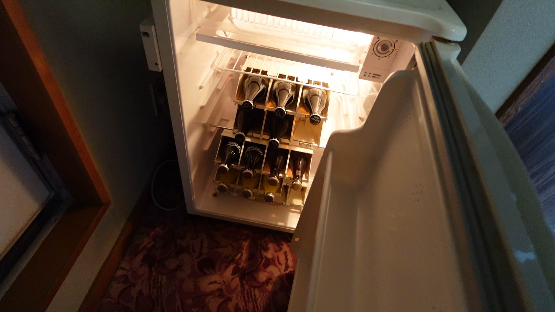 蒲郡市街や知多半島は見えない。 眼下には唄啓のこれは得だすお聞きやすでCM流してた銀波荘が見えて気持ちがいい。 ちなみに東海園の2軒隣はコロナのときに中国人が来なくて倒産してしまった富士見荘。 トイレはシャワートイレ。冷蔵庫は自動精算機能のあるやつで900円の瓶ビールが入ってるが、ドアポケットに持ち込んだ缶ビールを冷やす余地はある。 館内には自販機があるが激高である。 wifiは部屋にはなく、しかも楽天モバイルは圏外だった。 風呂 巨大大浴場と露天風呂と有料貸し切り風呂がある。