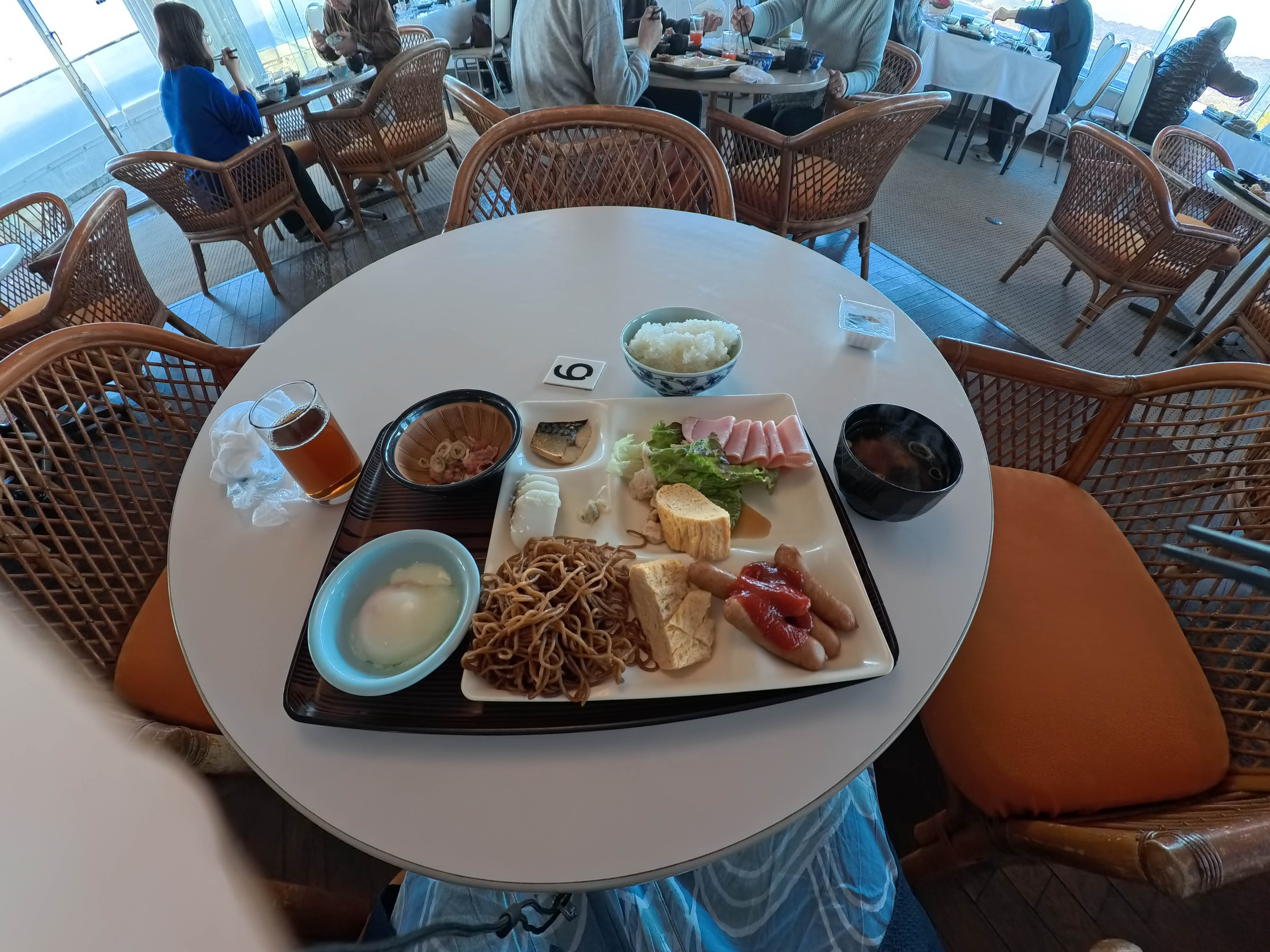 錆びたり天井・壁が変色してるのは仕方ないとして掃除は行き届いている。 館内表示には中国語もあったので来てるっぽいが、昨今の情勢で中国人は見なかった。 ホテルは山の頂上にあり2011年に「プロが選ぶ日本のホテル・旅館100選」に選ばれただけあって眺望はアホみたいにいい。