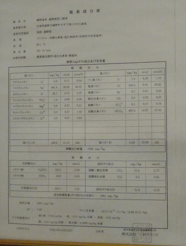温泉成分表