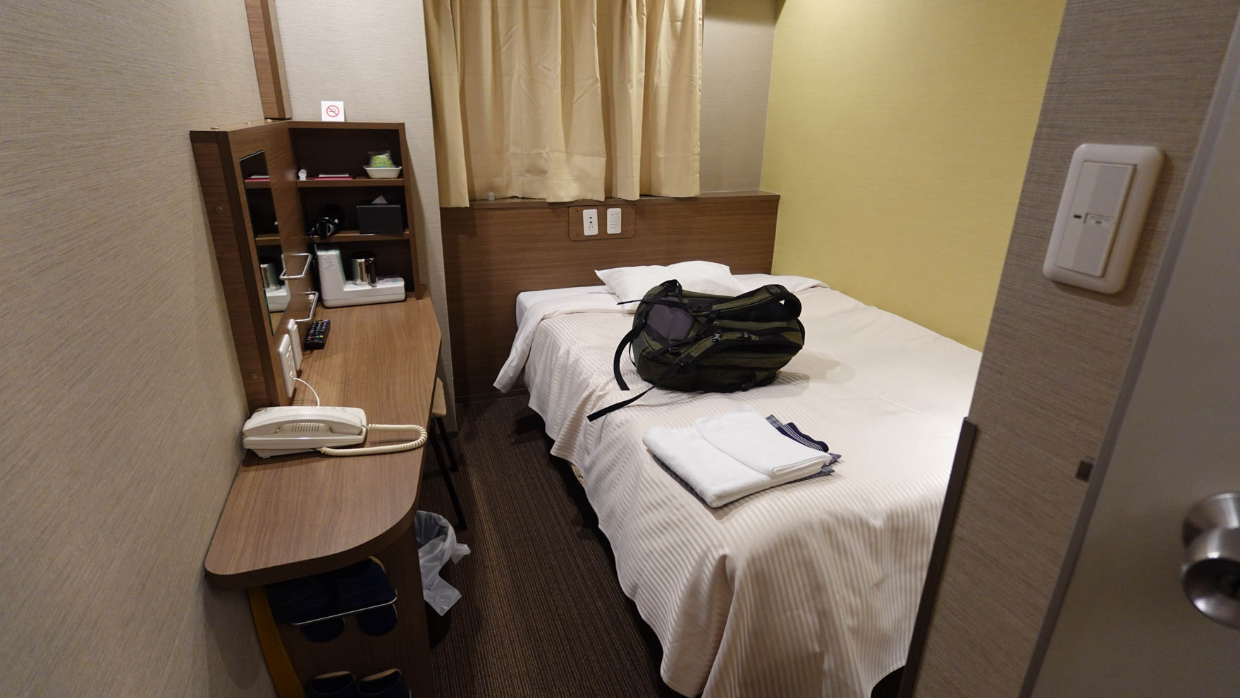 ということは海岸に行くには激坂を昇り降りする必要がある。 エレベーターもあるがこの日はメンテ中で停止。 海岸には加藤清正が名古屋城の石垣の石を取った跡がある。 蒲郡競艇近くには平安時代から犬飼湊があって徳川家康がまだ竹千代の頃人質に船出した由緒あるところ。竹島には関ヶ原の合戦前に戦勝祈願した神社がって、徳川家康と因縁が深い。 部屋 10畳部屋に案内されオーシャンビューがオレ史上最高だった。 ホテルは田原町を正面に見る向きで立ってるの見えてる陸地は渥美半島で、
